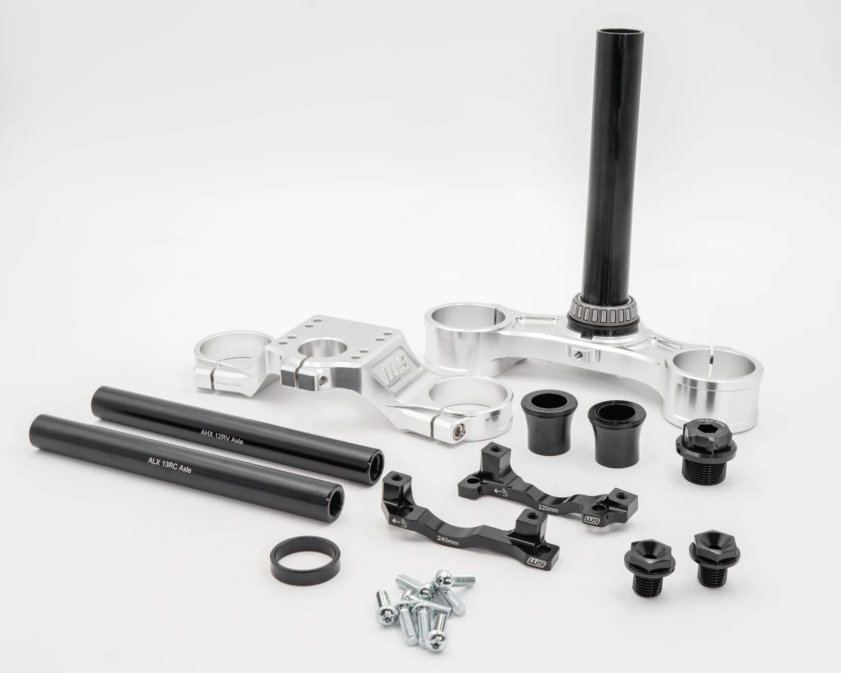 • Brake Brackets Included: Comes with offset brake caliper brackets compatible with 220mm and 240mm rotor sizes. A 250mm bracket will be available as an optional accessory in winter 2024.