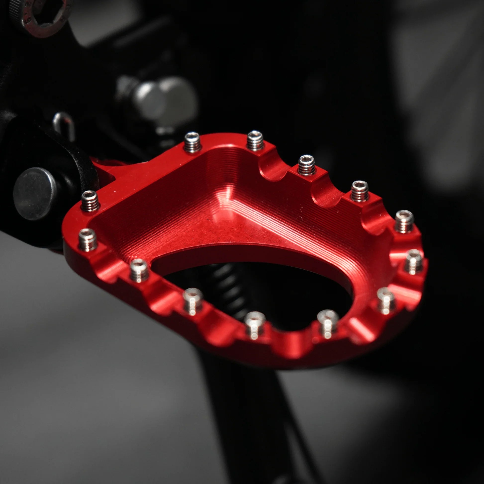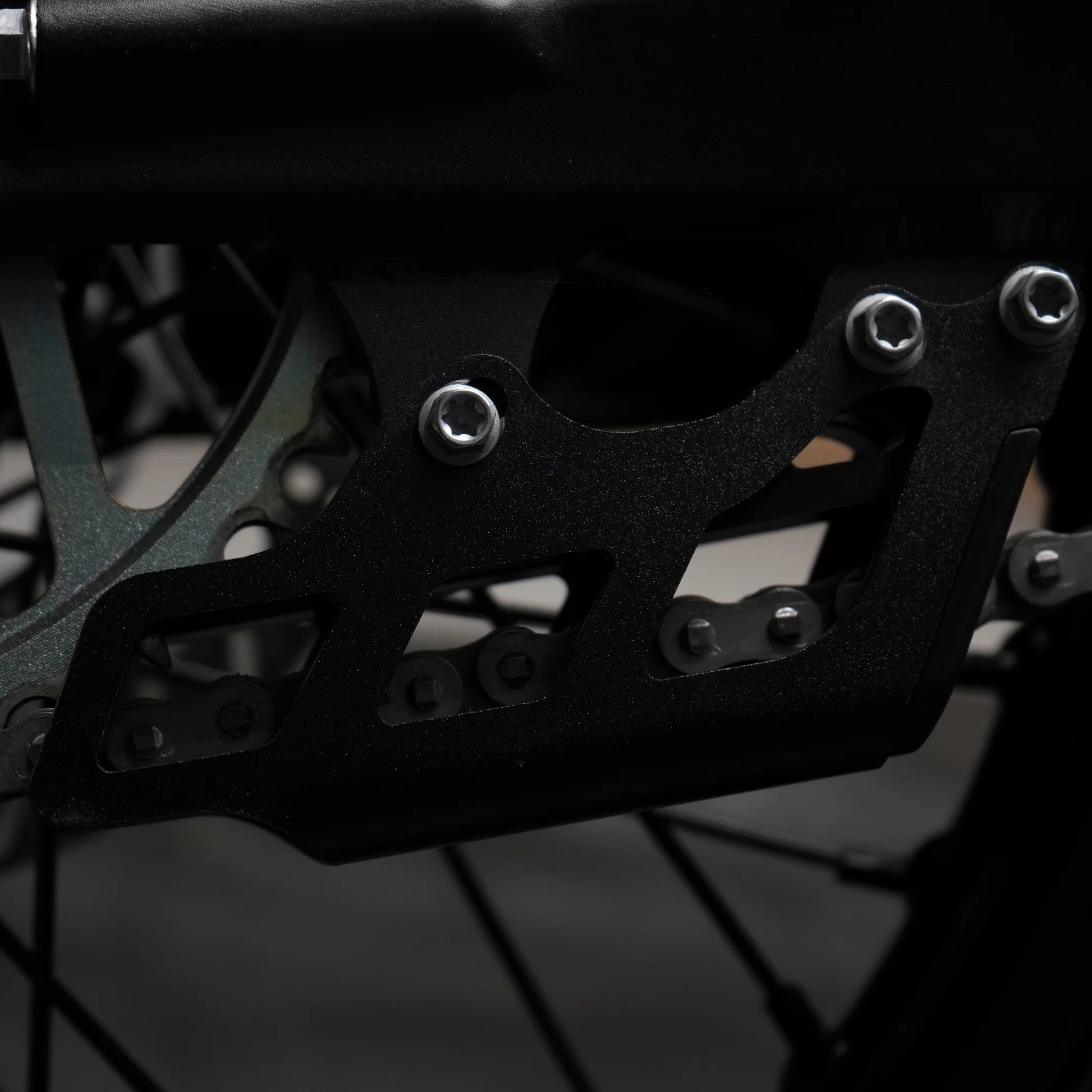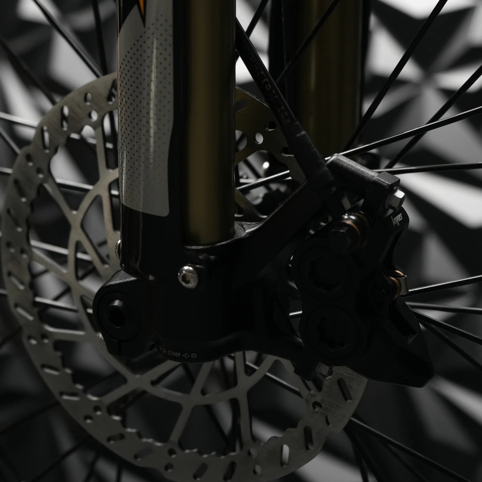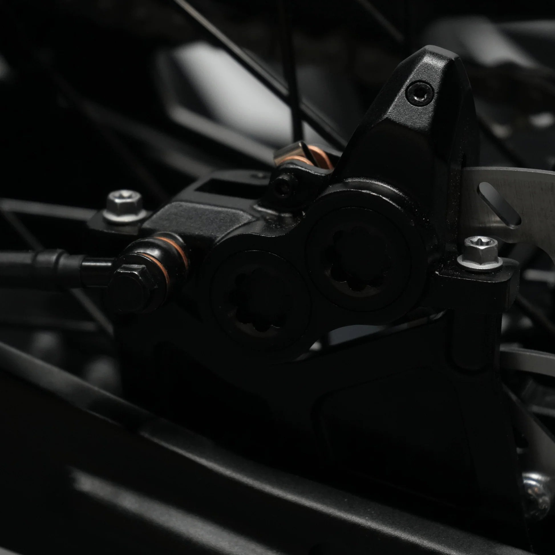 The XE PRO electric dirtbike is equipped with high-performance DOT 4 brakes, featuring front and rear 220 mm rotors for superior stopping power. These brakes ensure smooth, reliable performance in various conditions, offering excellent control and safety for riders tackling rough terrain. The DOT 4 brake fluid enhances heat resistance and durability, making the braking system ideal for intense off-road riding.