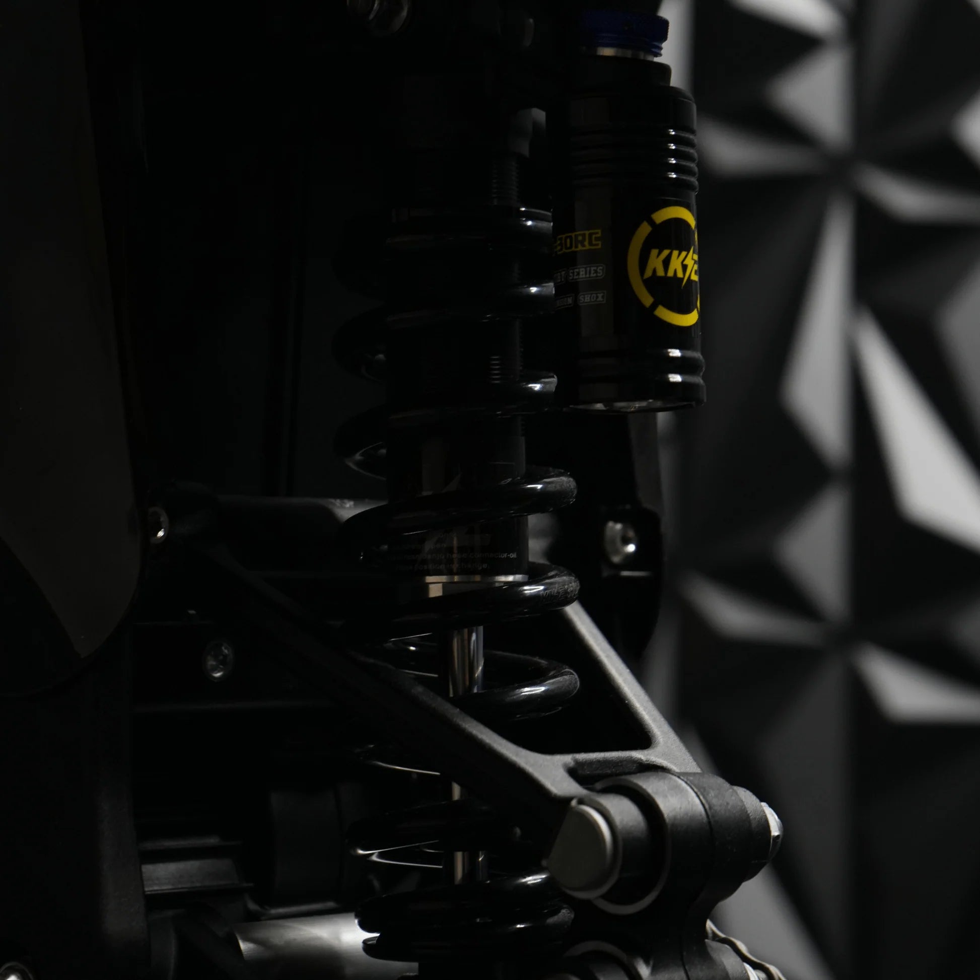 - Front Shock Absorber: 37 mm, 202 mm Stroke, Upside-Down
